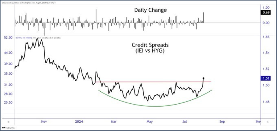 Yet, while credit strategies were delivering positive results in July, Steven Strazza called out the huge move in credit spreads to end the months in an X post. “I have no idea what to make of today’s price action… but, I do know that this is how bad things begin…Credit spreads making a big move today. Biggest daily spike since January. Hitting highest level since February. *$IEI $HYG is a crude measure for credit spreads.”