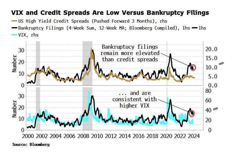 If Simon White at Zero Hedge is right, the significant increase in bankruptcies is a canary in the coal mine that, at least through November of this year, neither the credit nor the equity markets seem to be worried about.