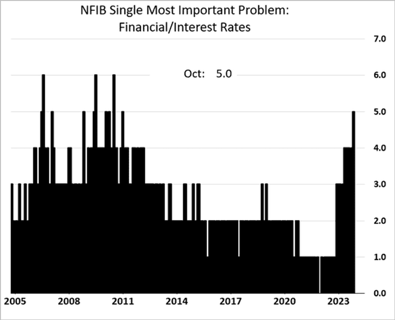 From the latest NFIB Small Business Sentiment Index in October, more firms are reporting expensive financing as a problem.